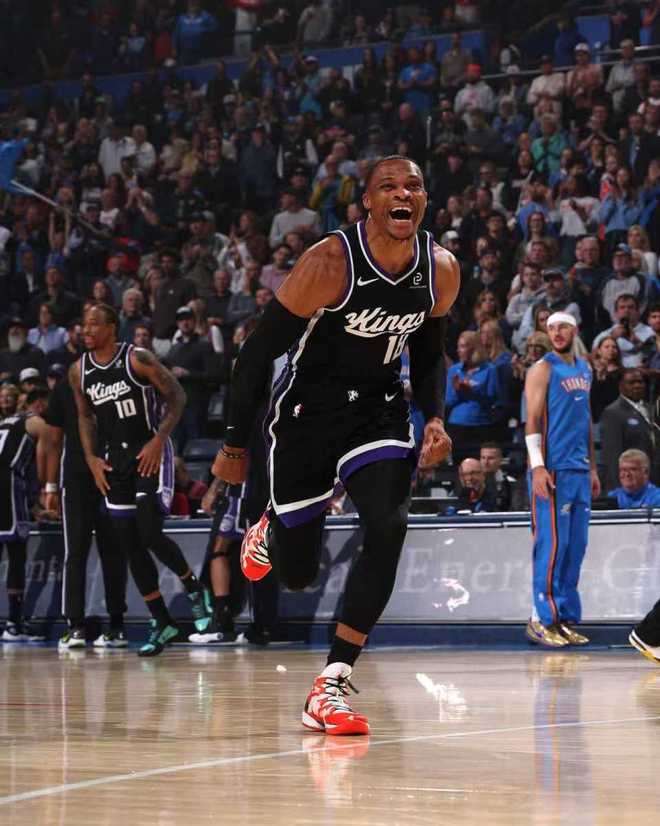 國王:威少加盟首次首發(fā)4記三分16分9籃板4助攻,拉文4記三分23分,德羅贊19分,小薩博尼斯10分18籃板3助攻,埃利斯12分。
